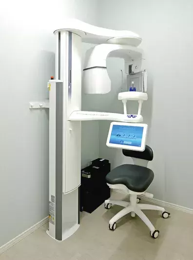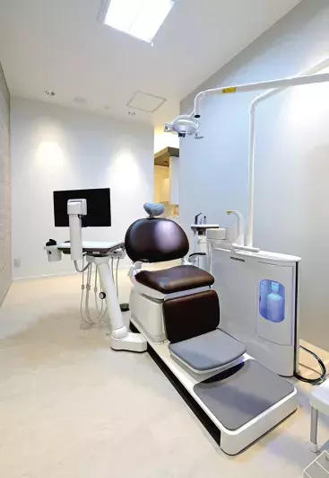 「ユニット内の水の洗浄システムによる衛生面と、デザイン性が気に入りました。ユニットのフォルムとブルーのライトを見て、患者さんにこのユニットを正面から見てほしいというアイデアを思いつき、院内のレイアウトを考えました」 このレイアウトにより、患者さんは体を預けるユニットをちゃんと確認できて診療への安心感を得られ、さらに診療スペースでの移動が最小限で済むことで緊張感の緩和にもつながっている。また、患者さんとスタッフの動線の確実な分離も実現している。