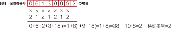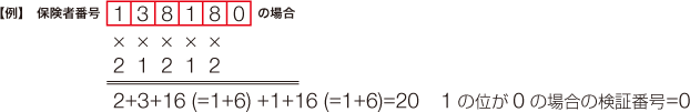 合計した数の1の位の数値を10からマイナスした数が、末尾の検証番号と同一であれば、保険者番号は正しいことになる