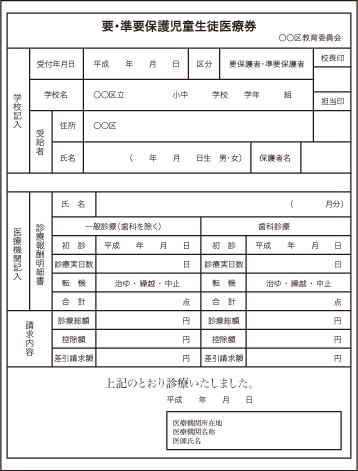 「要・準要保護児童生徒医療券」を提示することで、保険医療費における患者負担分が免除されます。