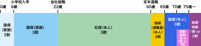医療保険制度では年齢や就職、結婚、退職 等により、加入する保険が変化します。
