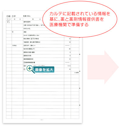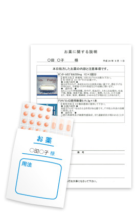 - 薬の飲み方などを書いた「薬剤情報提供書」を作成し、患者さんに薬の飲み方や効能、副作用などの情報を説明する