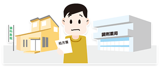 - 患者さんは「処方せん」を持って調剤薬局へ行き、薬を購入する