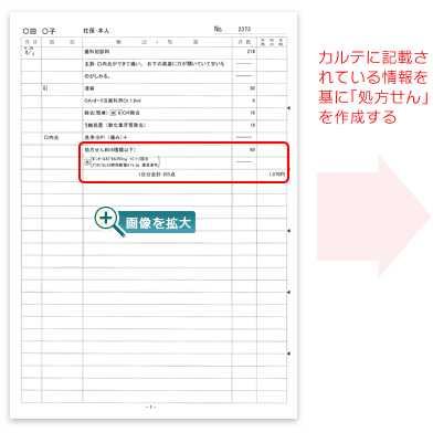 - カルテに記入されている情報を基に、患者さんにお渡しする薬を調剤薬局に指定する「処方せん」を作成する
