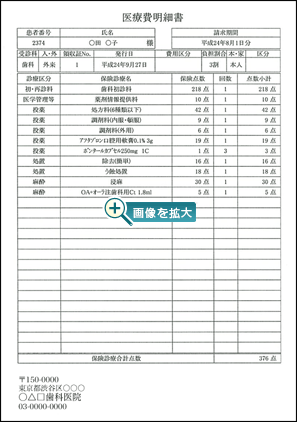 医療費明細書は、領収証に記載されている「保険治療項目ごとの点数」を更に詳しく記載した物で、原則として発行が義務付けられています。