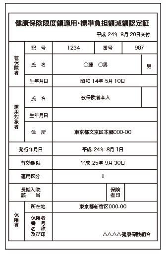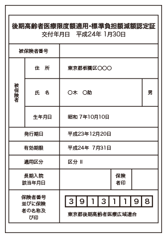 後期高齢者医療限度額適用・標準負担額減額認定証