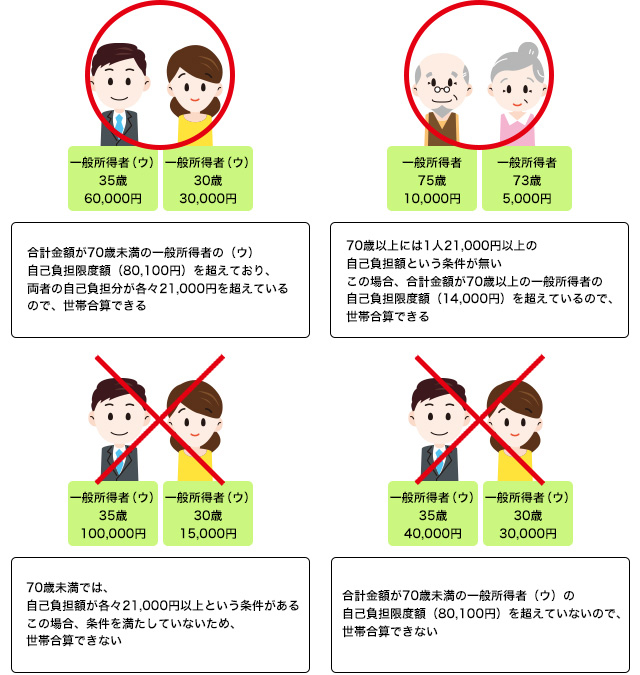 でなければ、合算金額が自己負担限度額を超えていても世帯合算の申請を行うことはできません。70歳以上の方の場合は、合算金額が自己負担限度額を超えていれば世帯合算の申請を行うことができます。