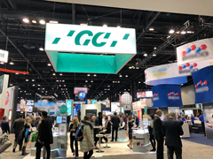 ジーシー展示ブースでは、現在アメリカで販売に力を入れている新製品「G-aenial Bulk Injectable(バルクフィルコンポジット)」、「Fuji Automix LC(光重合型充填用レジン強化グラスアイオノマー)」、「Universal Injectable(国内名:グレースフィル ローフロー)」、「G-Premio Bond」や予防製品「MI Paste One」などを中心に展示し、多くの先生方、歯科衛生士の皆様にご来場いただきました。