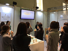 ジーシーブースでは、予防関連製品の「ルシェロ歯ブラシ」が発売以来10周年を迎えましたが、今回は患者さんの口腔内や背景に合わせて「処方」する「ルシェロ歯ブラシ」等の予防製品の展示や新しい薬用歯みがき「ルシェロ歯みがきペースト ホワイト」との組み合わせで効果的にステインを落とすことができる、新製品「ルシェロ歯ブラシW?10」の体験をしていただけるテアトロコーナー“美白体験会”を開催し、たくさんの方にお集まりいただきました。