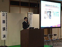 また、併催された愛知県歯科医学大会にて、東海歯科用品商協同組合企画講演があり、弊社より、営業部企画販促課の多田が「院内完結型CAD/CAMシステム『PLANMECA FIT』のご紹介」との演題にて製品紹介をさせていただきました。