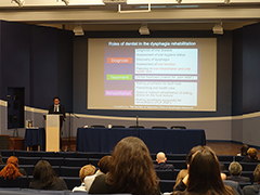 なお、弊社はIADRの「Geriatric Oral Research Group」のサテライトシンポジウムに協賛しており、今回もIADR開催前の6月17日(月)にサテライトシンポジウムがUBC Robson Squareで開催されました。ジーシーからは大阪大学大学院歯学研究科口腔分子感染制御学講座 林美加子教授より、フッ化物イオン、亜鉛イオン、カルシウムイオンを放出する、新しいBioUnionテクノロジーについてご解説をいただき、これらの技術を応用したBioUnion製品「ケアダイン シールド」、「ケアダイン レストア」について臨床応用を通したご発表をいただきました。