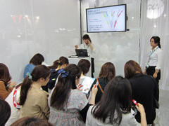 ブース内では、『ホワイト歯科グループ熊本 Pacific Endodontic Research Foundation JAPAN』の中川寛一先生による「歯科診療における視覚強化を考える ?マイクロデンティストリーへの誘い ?」をテーマにデモンストレーション付きのセミナーやinitial Instructorの橋本 誠先生(有限会社DELアーチ 代表)、辻 貴裕先生(dental BiOVISION株式会社 代表)によるDemonstration & Lectureを開催しました。また、弊社インストラクターによる口腔ケア製品のワンポイントレクチャーも開催し、たくさんの方にご参加いただきました。