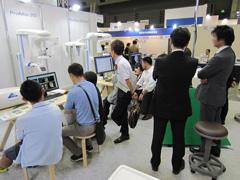 また、ユニットはイオムシリーズの新製品である「イオムレガロ」や「レフィーノ」、「フェリーチェ」、マイクロスコープはカールツァイス社製「OPMI pico」、レントゲンはアーム型X線CT診断装置「プロマックス2D SCARA2」等を展示しました。いずれのコーナーもたくさんの方にお立ち寄りただきました。また近く発売される予定の新しい人工歯「ゼンオパール」も発売に先駆け展示させていただきました。
