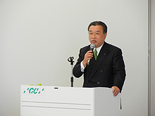 まず、弊社代表取締役社長中尾眞より、創業からのジーシーの歩みや、社是「施無畏」に基づき、お客様から見た価値の実現を目的に、「仕事の質」を高めるGQM活動と、その成果の一例としてのデミング賞、日本品質管理賞受賞などをご紹介いたしまし た。また、来たる100周年に向けての2021年Visionが新たに開始されたこともご報告いたしました。