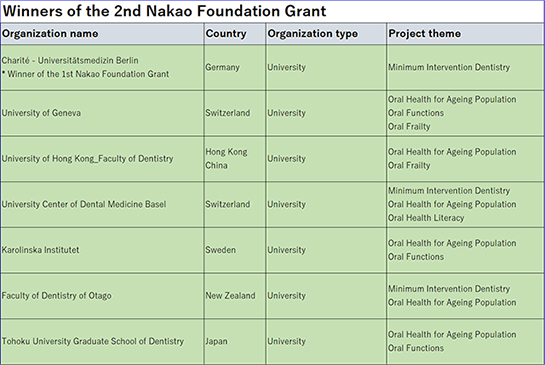 Foundation Nakao for Worldwide Oral Healthの第2回助成金案件が発表されました。