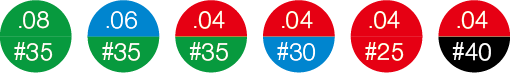 アソートセットA1函=6本入(#35/.08※、#35/.06、#35/.04、#30/.04、#25/.04、#40/.04 各1本入)