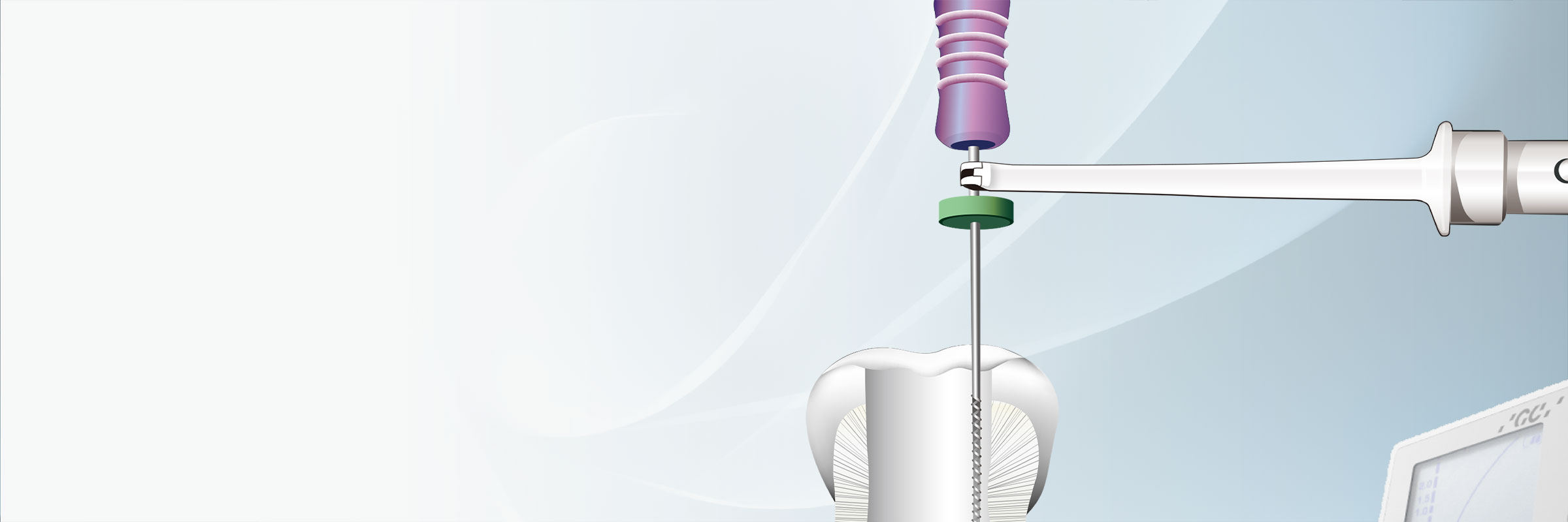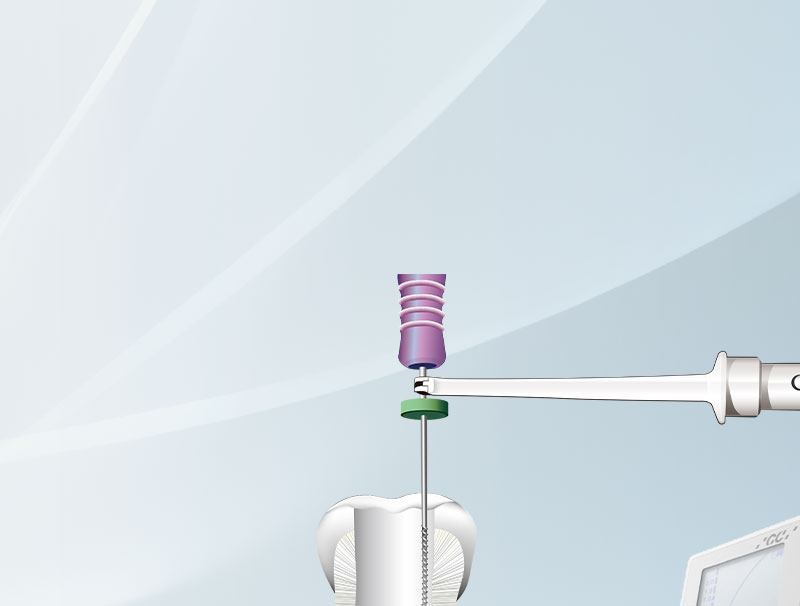 根管内へのファイル挿入と同時にバーグラフが表示され、ファイルの進行状況とバーの表示が連動します。