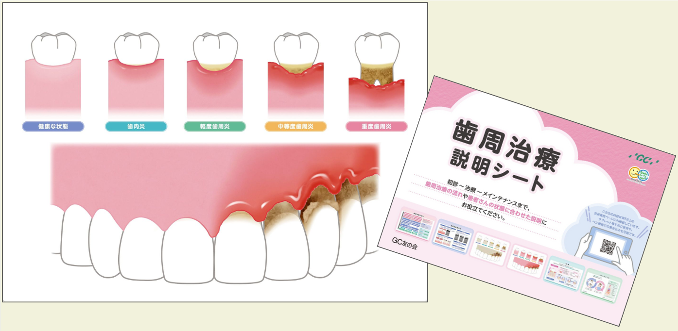 歯肉と骨の関係を伝えやすい、透明フィルム付き