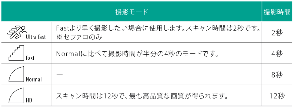 ワンショットタイプは最短0.2秒、スキャンタイプは最短2秒(Ultra fastモード)で撮影ができます。