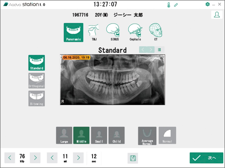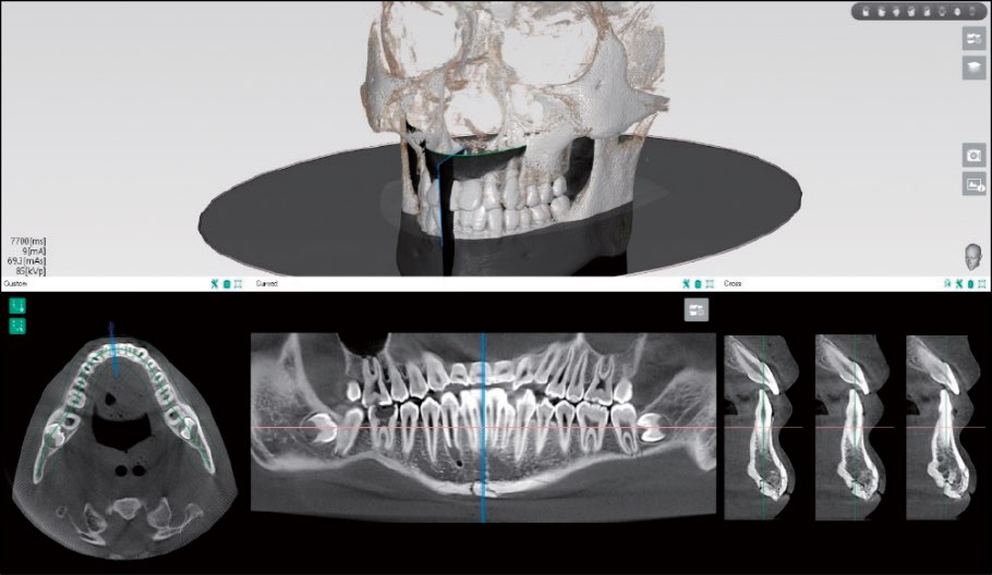 パノラマ断層カーブを自由に設定し、再構成した断層画像とクロスセクション画像を得ることができます。