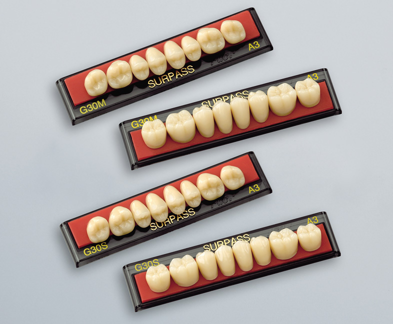 サーパス 臼歯 Gシリーズ 硬質レジン臼歯 SURPASS POSTERIOR G-SERIES 製品概要 4層構造のサーパスGシリーズ前歯からのスムースな移行性、ナチュラルライクな臼歯咬合面など審美性と機能性に徹底的にこだわった設計になっています。 形態 上下顎2形態・3サイズ=G28M、G30M、G32M、G28S、G30S、G32S 色調 7色=A1、A2、A3、A3.5、A4、B3、C3 包装 8揃=1個 … セミナー 硬質レジン歯 ジーシー サーパス(サーパスGシリーズ) 管理医療機器 21400BZZ00073000 関連製品 サーパス 前歯 Gシリーズ サーパスGシリーズセレクターパレット この製品に関するよくある質問 製品Q&A(よくある質問) ダウンロード パンフレット 上顎軽度フラビーガム症例への対応 ―サーパスGシリーズ使用例― サーパスGシリーズ パンフレット その他 レジン歯・硬質レジン歯の物性 サーパス臼歯Gシリーズ モールドチャート