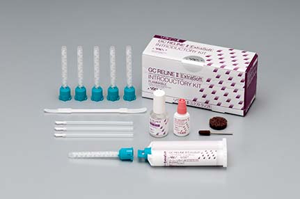イントロダクトリーキット1函=カートリッジ(48mL)1個、プライマー(レジン用)8g(10mL)1本、リムーバー(レジン用)5g(5.5mL)1本、ミキシングチップIIL 6本、プラスチックスパチュラ 1本、ディスポーザブル筆 3本、形態修正用ポイント(シリコーン用)1本、仕上げ用ホイール(シリコーン用)1枚
