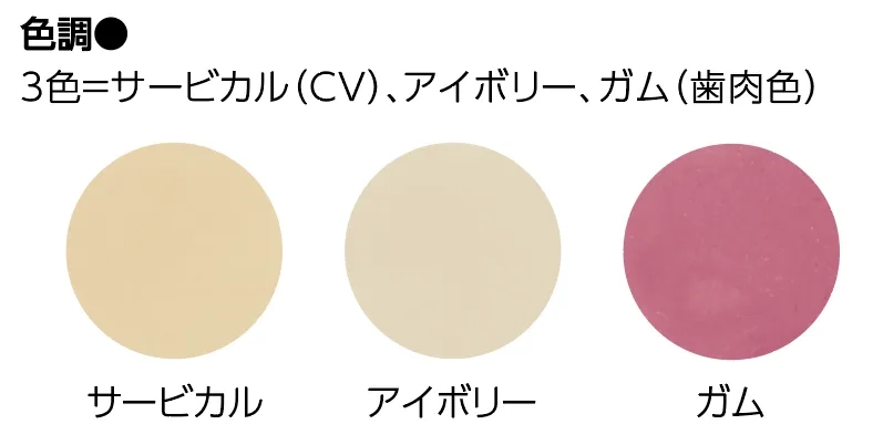 3色=サービカル(CV)、アイボリー、ガム(歯肉色)
