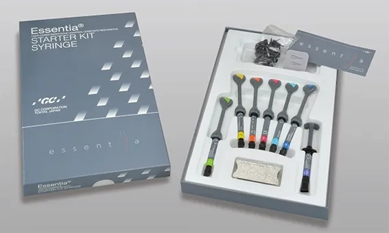 エッセンシア スターターキット1函=シリンジ2.0mL 7本(LD3.4g、MD 3.4g、DD 3.4g、LE 3.8g、DE 3.8g、U 4.0g、ML3.4g)、フィリングチップ用キャップ1個、フィリングチップIIIプラスチック20個、カスタムシェードガイドシリコーンモールド1個、カスタムシェードガイドメタルタブホルダー1個、テクニックガイド(シェードコンセプト、シェードガイド、シェードセレクション)…