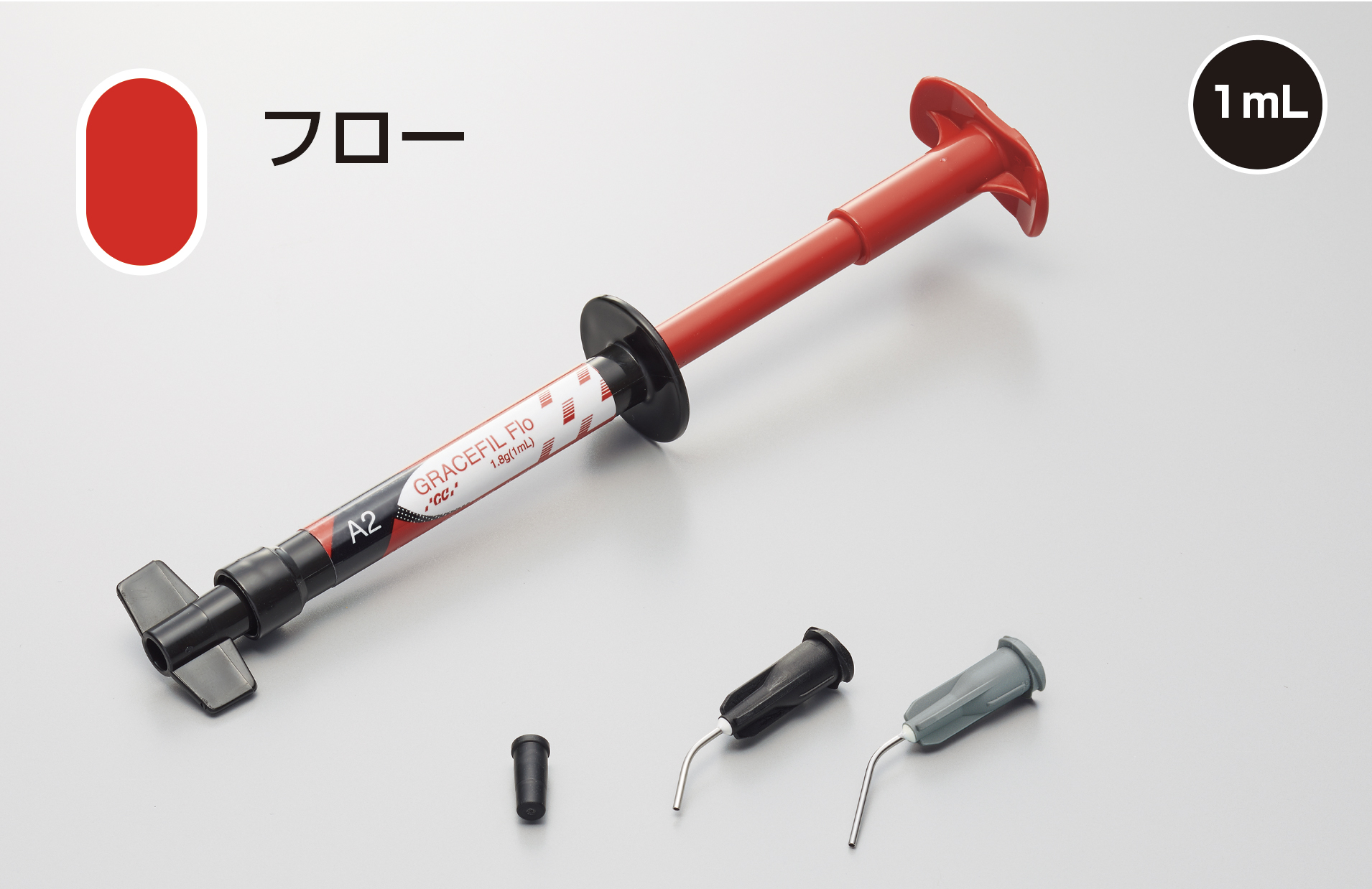 フローは、すぐれた流動性により窩底部によくなじみ、小さな窩洞への充填やライナーとしての積層充填、歯頸部の充填に適しています。 従来の1mLシリンジに加え、コストパフォーマンスが良く使いやすい2mLシリンジが仲間入りしました。