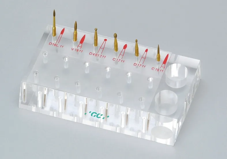 コンポジットレジンやグラスアイオノマーによる充填部分の修正・仕上げ研磨用。ffタイプ(超微粒子)の「スムースカット」の中から、前歯から臼歯までの幅広い症例に対応できる6形態を選びました。