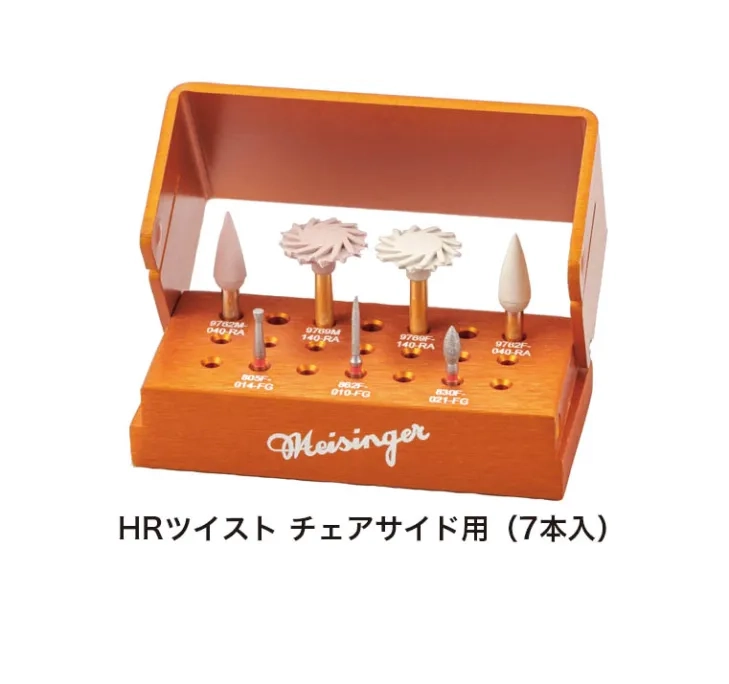 ■マイジンガーラスターキットHRツイスト チェアサイド用(7本入) 1函=マイジンガーダイヤモンドバー( DM805F(FG)014、DM862F(FG)010、DM830F(FG)021)各1本、マイジンガーポリッシャー(FP9762M(RA/CA)040、FP9769M(RA/CA)100、FP9762F(RA/CA)040、FP9769F(RA/CA)100)各1本… ■マイジンガーラスターキットHRツイスト ラボ用(7本入) 1函=マイジンガーダイヤモンドバー(DMS805(HP)018)1本、マイジンガーアブレーシブポイント(AM9735G(HP)050)1本、マイジンガーポリッシャー(FP9769M(HP)170、FP9769F(HP)170、FP9787(HP)145)各1本…