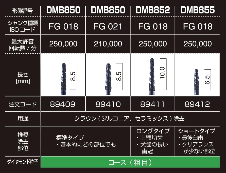 ジルコニア補綴物の除去に最適なDLC(ダイヤモンドライクカーボン)コーティングダイヤモンドバー