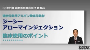 アローマインジェクション 連合印象用アルギン酸塩印象材 AROMA INJECTION 製品概要 アルジネート印象材との連合印象により保険算定可能なカートリッジタイプの連合印象用アルジネート印象材。 無圧時には狙ったところに留まり、圧接時には細部まで広がります。十分な引き裂き強さ(ちぎれにくさ)と細部再現性(精密さ)により、精密な印象採得が行えます。また、約30秒の操作時間で圧接のタイミングに左右されず、常温で使用できるため熱刺激もありません。 包装 1函=カートリッジ64g(50mL)2個 ※ミキシングチップll・ミキシングチップSS用ノズルは別売です。 歯科用アルギン酸塩印象材 ジーシー アローマインジェクション 管理医療機器 301AKBZX00058000 関連のビデオ 1分でわかるアローマインジェクション 【GC友の会 歯科医師会員向け新製品】連合印象用アルギン酸塩印象材 ジーシーアローマインジェクション 臨床使用のポイント 1分でわかるアローマインジェクション 【GC友の会 歯科医師会員向け新製品】連合印象用アルギン酸塩印象材 ジーシーアローマインジェクション 臨床使用のポイント 関連製品 ミキシングチップII/ミキシングチップノズル カートリッジディスペンサーII この製品に関するよくある質問 製品Q&A(よくある質問) ダウンロード パンフレット アローマインジェクション パンフレット