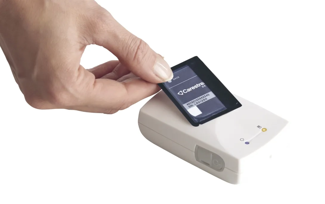 スキャン操作はスマートプレートを差し込むだけのシンプルワンステップです。スマートプレートはデンタル用フィルムとほぼ同サイズで、薄く、柔軟性にすぐれているため、患者さんへの負担を軽減させます。歯科用画像管理システム「Aadva Station」で直感的な画像管理と撮影設定が行えます。