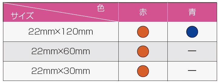 4種=(幅22mm×長さ120mm)赤、青/(幅22mm×長さ60mm)赤/(幅22mm×長さ30mm)赤
