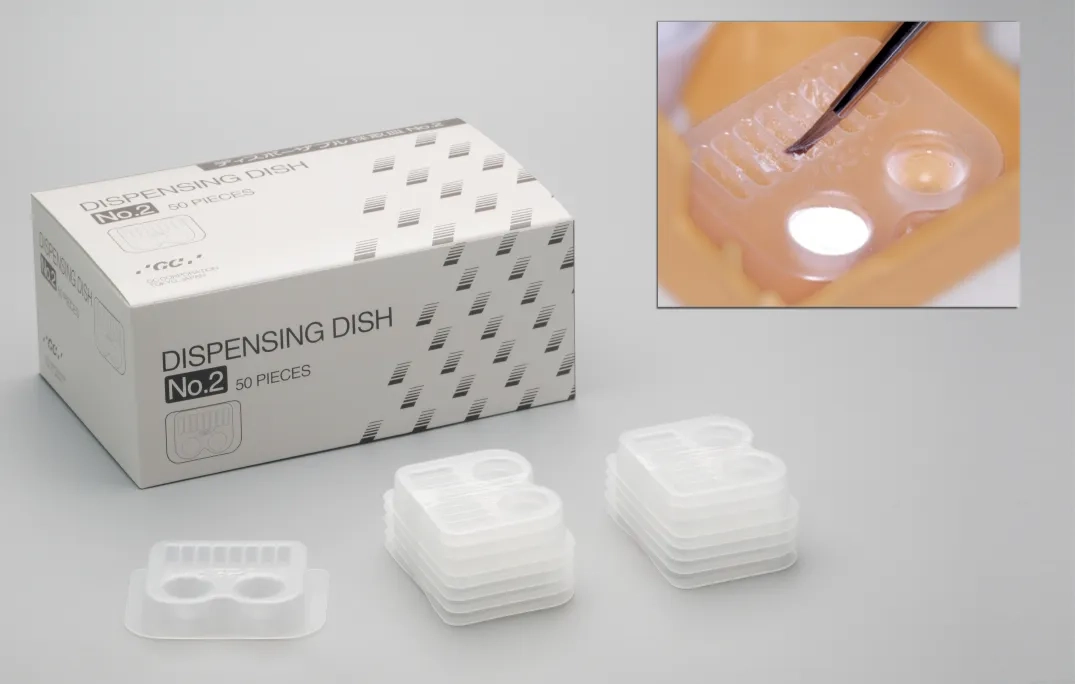 ディスポーザブル採取皿(No.2) DISPOSABLE DISH(No.2) 製品概要 常温重合レジン(ユニファスト等)を用いた筆積法に重宝する採取皿です。 左右の皿に少量の粉・液を採取して使います。簡易的に筆の清掃もできる便利グッズです。 包装 1函=50枚 関連製品 ディスポーザブル採取皿 ディスポディッシュ