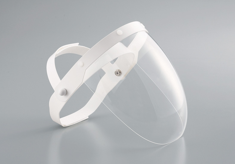 診療や技工作業時の飛沫や粉塵から顔面を守ります。シールド角度は自由に変えられます。