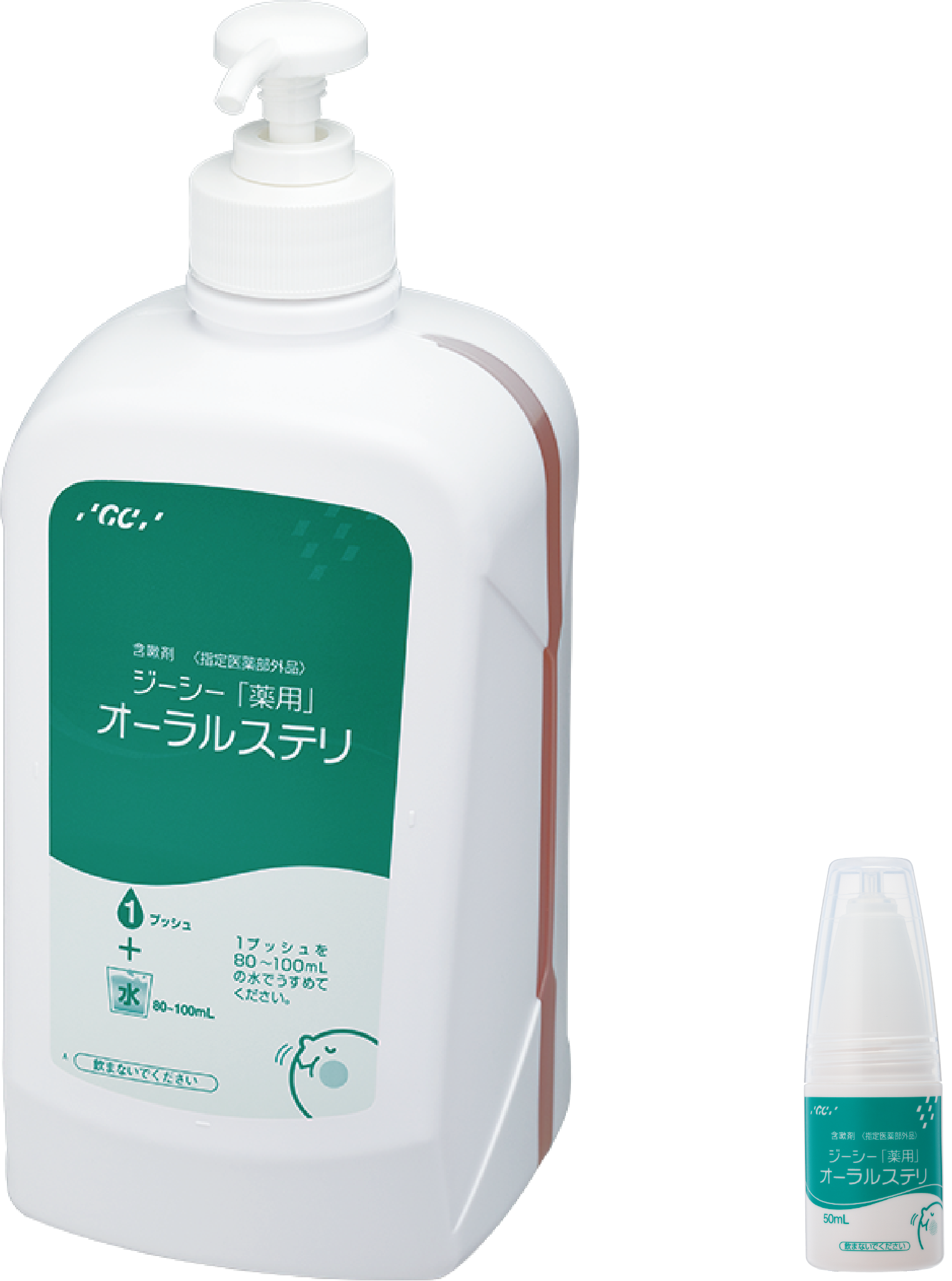 口腔内の殺菌・消毒・洗浄、口臭予防の効能・効果があります。水でうすめて使う希釈タイプで、着色しにくい透明タイプを採用。医院用の1Lと患者さん用の50mLがあります。
