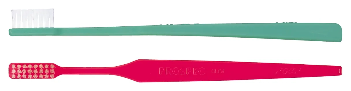 プロスペック®歯ブラシ スリム 歯ブラシ PROSPEC® TOOTH BRUSH〈SLIM〉 製品概要 スリムなヘッドでネックを長く設計した歯ブラシ 毛先コントロールがスムーズで、ポイントをしぼったブラッシングに最適です。 種類 毛の硬さ=M(ふつう) 色調 4種=バミューダグリーン、カナリーイエロー、アゼリアピンク、ラベンダーブルー 包装 1函=20本(各色5本) 〈希望患者価格 1本=360円(税込)〉 セミナー 関連製品 プロスペック®歯ブラシキャップ プロスペック®歯ブラシ ヤング フォーレッスン プロスペック®歯ブラシ アダルト プロスペック®歯ブラシ ヤング プロスペック®デンタルミラー この製品に関するよくある質問 製品Q&A(よくある質問) ダウンロード パンフレット プロスペック® リーフレット 毛先磨きのポイント その他 プロスペック® 歯ブラシ 色調見本