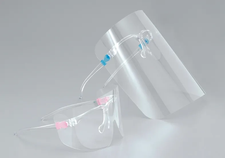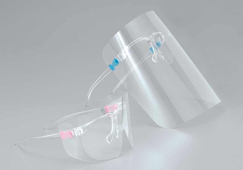 眼鏡の上からも違和感なく装着可能で、シールド内面には呼気による曇りを防止する防曇加工が施されています。シールドは、簡単に交換できる交換式です。