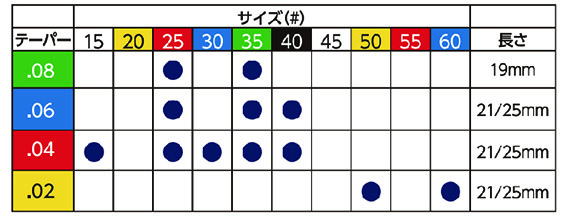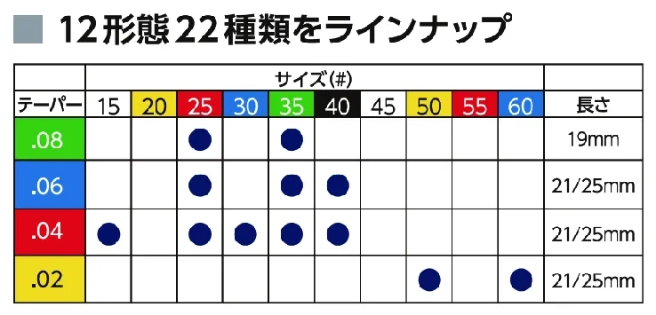 テーパー.06、.04、.02は長さ21mm/25mmの2種