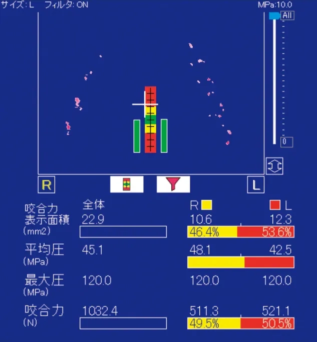 咬合力を可視化し、客観的に把握することができる咬合力分析システム。