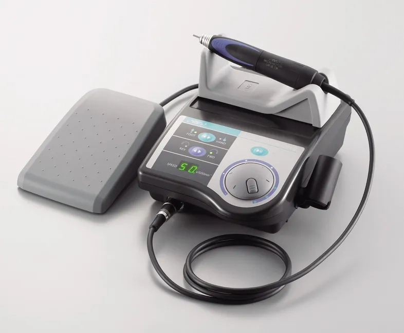 一式=本体1台、モーターハンドピース1本、ハンドピーススタンド/ホルダ各1個、フットペダル1台、他付属品付