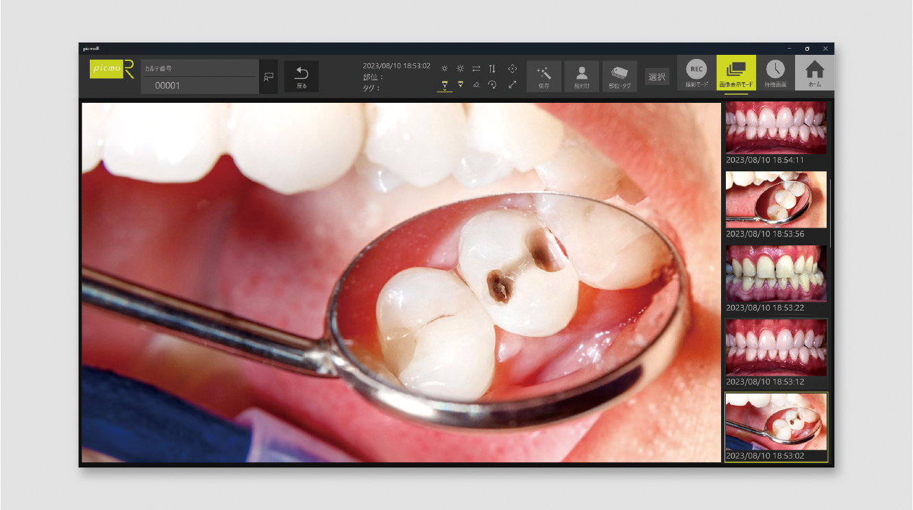 治療時の歯科用顕微鏡(マイクロスコープ)での静止画はもち ろんのこと、ライブ撮影動画等の一元管理を可能にします。また、 診療の動きに沿ったインターフェース開発で直感的な操作を 実現しました。ピクモアールを使用することで画像管理がデータ のアーカイブの枠を超えて患者様とのコミュニケーションツール へと飛躍的な変化を生み出します。