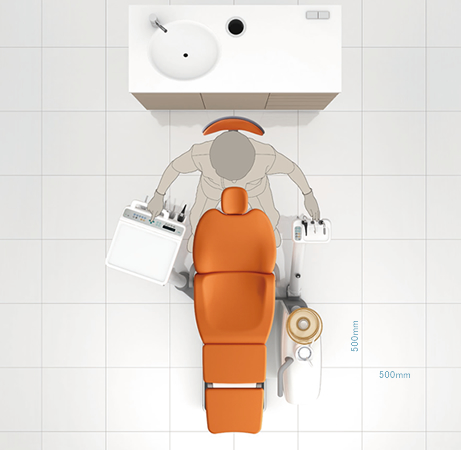 12時診療においてインスツルメントやバキュームが無理なくスムースに取り出せる範囲にレイアウトされていますので、操作の度にスツールから立ち上がる必要がありません。