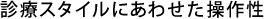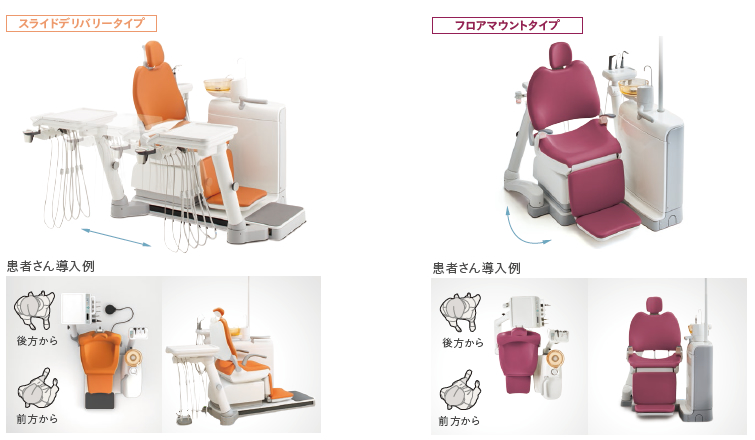 患者さんの導入は、前方からでも後方からでも導入可能。前方からの導入の際は、インスツルメント類が患者さんの視界に入りづらくなり、診療前の不安を和らげます。