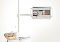 液晶モニタ※は、ドクターユニットに取り付けるタイプ※とライトポールに取り付けるタイプ※の2 種類をご用意。オーバーアームタイプに取り付けた場合でもスムースに動き、思いどおりのポジションに止まります。操作パネル右横にはテンキー・マウストレー※が設置可能。操作しながらのインフォームドコンセントにより、円滑なコミュニケーションを実現します。