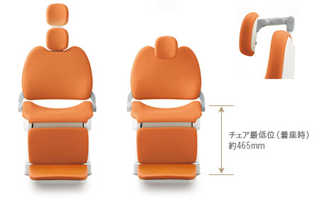 低反発タイプのチェアシートは、身体をしっかりと支えるとともに患者さんの緊張感を和らげることができます。