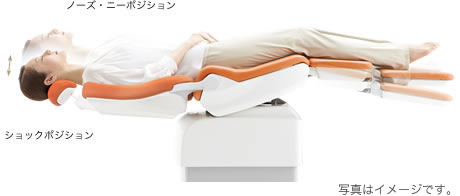 貧血などのショック状態にも対応できる可動範囲の広い設計により、ベッドなどに移し変える作業負担を軽減できるとともに、安心して診療ができます。