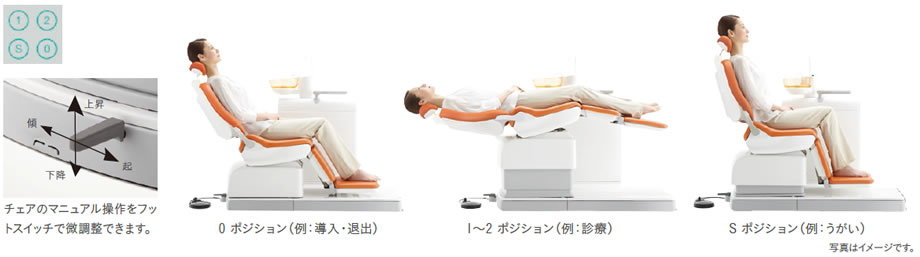 安定した姿勢を維持できるノーズ・ニーポジションを考慮した設計で、 長時間にわたる診療でも患者さんの疲れを軽減します。