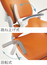 右側のアームレストは可動式のため、チェアへの乗り降りの際にも邪魔にならずスムースな着座が可能です。